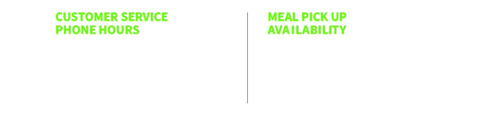 Any orders placed from Monday – Thursday midnight, you will receive your meals on the following Sunday. Any orders placed from Friday – Monday midnight, will be delivered on Wednesday! For any questions with ordering, we are happy to assist!